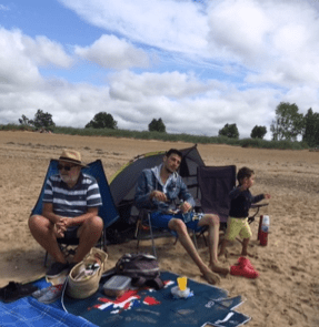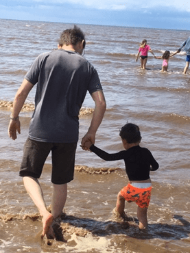 “At first, we wanted to be able to do something to help a family living in such difficult circumstances, with no home of their own. Now, we enjoy being able to do some fun and often simple activities with the family: things that we take for granted. Shopping, watching films, having a b-b-q, eating together have all been part of enjoying getting to know them Then seeing the enjoyment that they have experienced as a result: here, going to the beach and wading in the sea with a very active three- year old.”