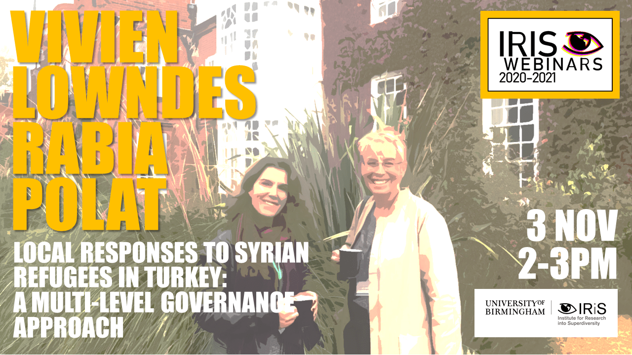 In this webinar organised by the University of Birmingham’s Institute for Research into Superdiversity (IRiS), Vivien Lowndes and Rabia Polat present their work on the governance of Syrian refugees in Turkey