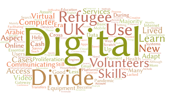 During the pandemic, the internet become the gateway for facilitating communication and accessing many essential services in the UK, such as e-health consultations, virtual education platforms, digital cash transfers, and e-payment systems. To help refugees to cross the digital divide, volunteers had to supply their households with adequate hardware and ensure they had access to the internet through broadband or mobile data. Although the majority of refugees are savvy mobile users, some lacked digital skills and had to learn from scratch important actions such as setting up an email account, using search engines, or familiarising themselves with Word documents.