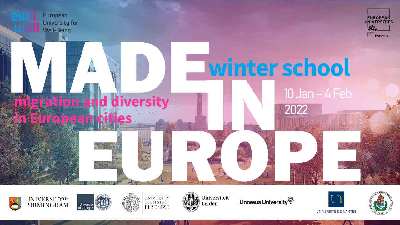 The Call for Participants for the euniwell winter school on Migration And DivErsity IN EUROPEan cities (MADEINEUROPE) is now open. The winter school is open to Masters and PhD students enrolled to one of the seven universities of the euniwell network – the universities of Birmingham (UK), Florence (Italy), Leiden (the Netherlands), Cologne (Germany), Nantes (France), Linnaeus (Sweden) and Semmelweis (Hungary) – and practitioners working for one of the 102 associated partner organisations.