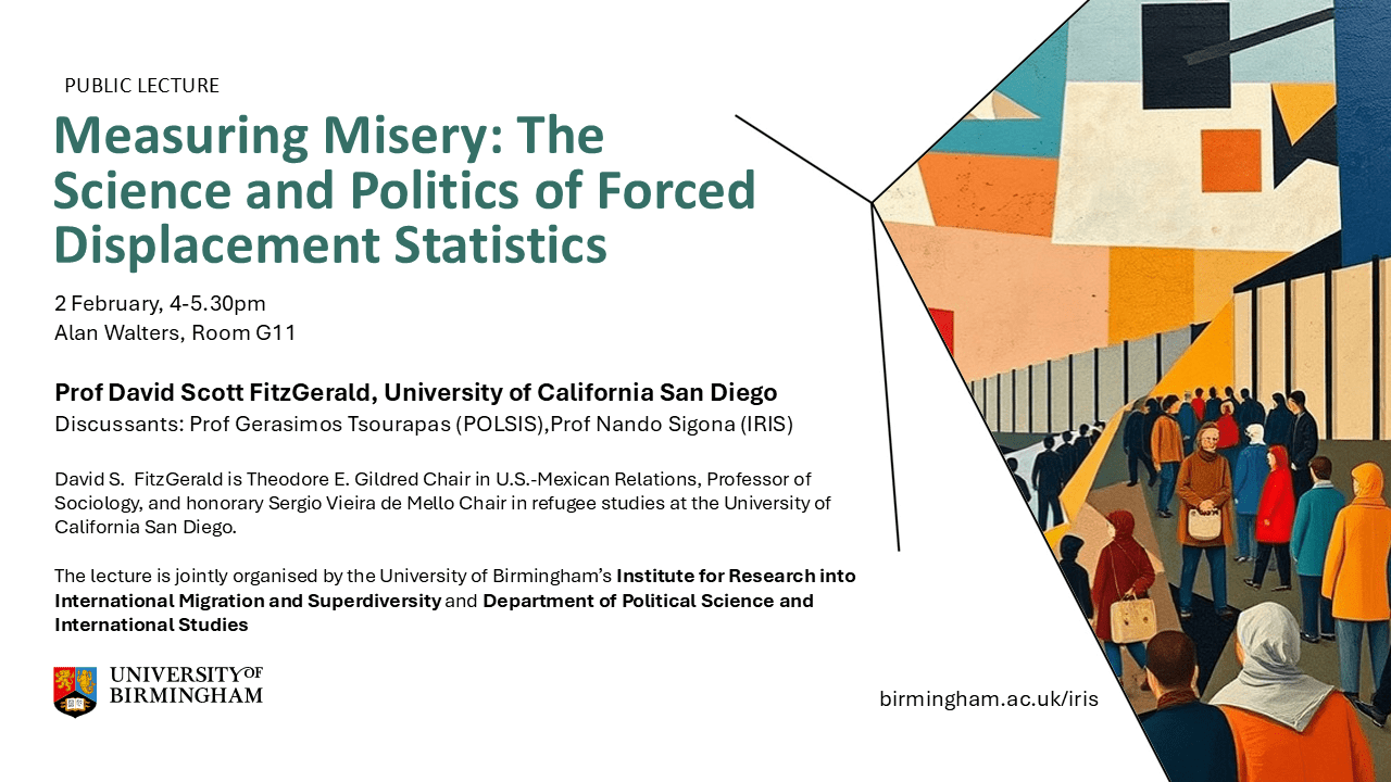 The lecture is jointly organised by the University of Birmingham’s Institute for Research into International Migration and Superdiversity (IRIS) and Department of Political Science and International Studies (POLSIS).