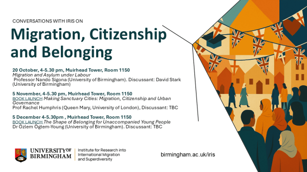 We are delighted to announce our seminar series for this academic term. All seminars are free and open to the public. They will be held in Room 1150, Muirhead Tower, University of Birmingham. In the first seminar on 20 October, Nando Sigona examines the migration agenda of the Labour government in its first year in... Continue Reading →