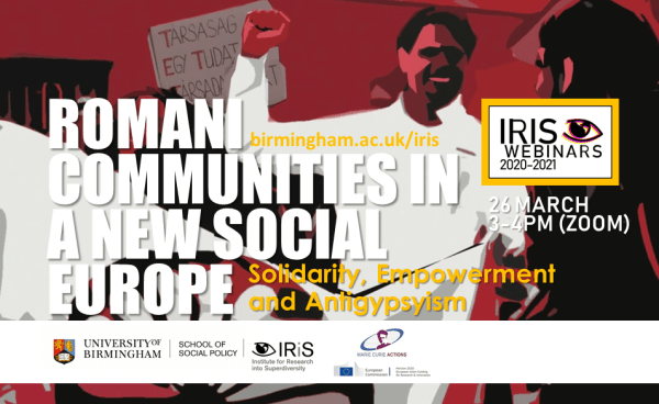 Book cover, Romani Communities and Transformative Change, 2020 This IRIS webinar draws on Roma community voices and expert research collected in the recently published book “Romani Communities and Transformative Change. A New Social Europe” (Bristol University Press, 2020). As the vast majority of Romani communities across Europe experience high levels of exclusion, this webinar explores... Continue Reading →